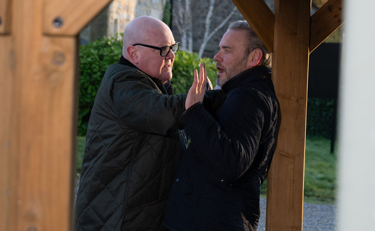 Paddy’s anger quickly explodes as he pins Ray up against the gazebo. But Ray keeps his cool, and makes it clear that if Paddy breathes a word, then Dylan will be the one to suffer. He’s nearly killed him once, he could easily go back and finish the job.